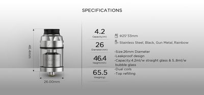 Augvape INTAKE Dual 26mm RTA Özellikleri: