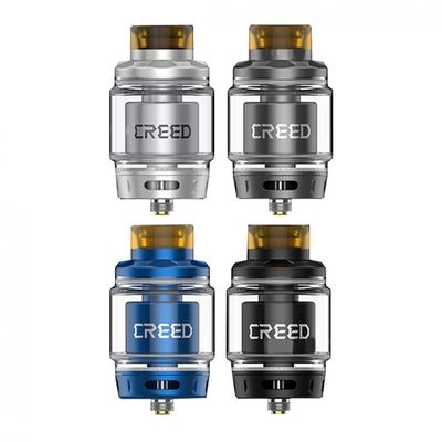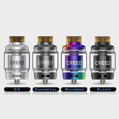 GeekVape, Creed 25mm RTA'ya, RTA'nın hava akışını büyük ölçüde değiştiren benzersiz bir değiştirilebilir iç bölme sunar. Bu pakette üç farklı bölme bulunur: bir adet kapalı, bir adet dikey ızgara oluklu ve bir adet yuvarlak ızgara desenli. Katı oda, diğer seçeneklerden daha standart bir daha sıkı çekme olacak şekilde tasarlanmıştır. Dikey ızgara hava yuvası 1 mm genişliğindedir ve 3 mm, 4 mm ve 6 mm yüksekliğindedir, ortada en yükseğe yerleştirilmiştir. Yuvarlak ızgara hava limanları, yanlarda sekiz adet 2 mm hava limanına sahiptir. Değiştirilebilir her oda, hava limanlarını doğrudan bobinlere hizalamak için tasarlanmıştır. Hava akımı, çift 10 mm x 3 mm hava deliğine sahip tırtıklı bir alt halka ile ayarlanır. Creed 6.5ml bubble cam ile önceden yüklenmiş olarak geliyor ve yedek olarak 4.5ml standart cam var. Bu RTA atomizerde iki geniş elektronik sigara likiti girişine sahip dişli bir üst kapak bulunur. Geekvape Creed RTA Atomizer, üstten monte edilmiş Yassı Başlı vidalarla her biri bir 3 mm terminali olan iki direğe sahiptir. Yapı güverte iki büyük 9mm x 3mm fitilleme portu vardır. Geekvape Creed RTA üç damla ucu ile paketlenmiştir: bir adet 14mm konik delik ULTEM damla ucu, bir adet 11mm standart delik buzlu 528 damlalık uç ve bir adet 12mm konik delik Delrin 8 damlalık uç. Creed RTA paslanmaz çelik ve cam bir yapıya sahiptir ve altın kaplama 510 bağlantısına sahiptir. Geekvape Creed 25mm RTA, tüm gün süren tank arayan kullanıcılar için mükemmel olan çok yönlü bir hava akışına sahip mükemmel bir yüksek kapasiteli RTA'dır.