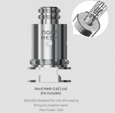 Smok Nord Pod 0.6 ohm MESH DL coil, Normal likitleri kullanmak üzere daha fazla buhar ve aroma vermesi için tasarlanmıştır. Maksimum önerilen watt değeri; 25 watt'dır.