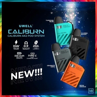 Uwell Caliburn AK2 Pod Mod, Entegre 520mAh şarj edilebilir pil, maksimum 15W çıkış içeren ve 2 mL 0.9ohm UN2 Meshed Pod'lar kullanan Uwell Caliburn AK2 15W Pod Sistemini satın alın. Dayanıklı alüminyum alaşımdan üretilen Caliburn AK2 Pod Sisteminin kasası, hareket halinde olanlar ve güvenilir bir buhar sistemi arayanlar için mükemmel olan ince ve taşınabilir bir profile sahiptir. Hızlı bir Type-C şarj sistemi kullanan Caliburn A2 Pod Sistemi, pili %95'e kadar şarj etmek için 35 dakika kadar kısa bir sürede vaping sağlayabilir. 2 mL yeniden doldurulabilir kapsül ile donatılmış Caliburn AK2, lezzetli aroma ve buhar sağlayan 0.9ohm UN2 Meshed-H Bobin Bölmeleri kullanır.