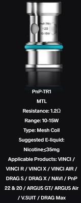 PnP-TR1 regular coil ile en sıkı MTL çekiş. Sigara benzeri deneyim arayanlar için ideal. Salt likit önerilir.