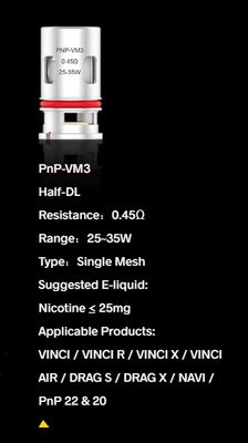 VOOPOO PnP Coil, 0.15 ohm, 0.2 ohm, 0.3 ohm, 0.45 ohm, 0.6 ohm, 0.8 ohm, 1.0 ohm ve 1.2 ohm coil seçenekleriyle PnP serisi ve uyumlu cihazlarla tam uyumlu, yoğun aroma ve dengeli buhar performansı sunar.