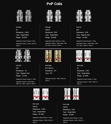 VOOPOO PnP coil serisi, Plug’n’Play tasarım ile 20’den fazla VOOPOO cihazla uyumludur. Mesh’ten Regular’a 8 farklı coil ile DL, RDL ve MTL çekiş stillerinin hepsini destekler.