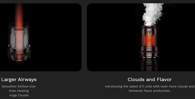 GTi mesh coiller geniş ısıtma yüzeyi sayesinde likiti homojen şekilde buharlaştırarak yoğun aroma ve büyük bulut üretir.