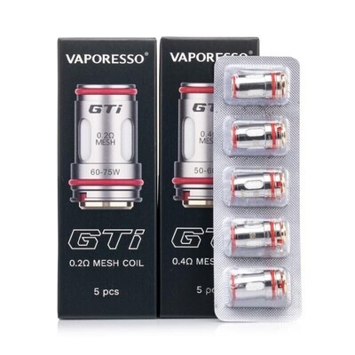 Vaporesso GTi 0.2/0.4 ohm Mesh Coil (5’li Paket) – DL içim için yoğun buhar ve net aroma sunar. 0.2 ohm için <15mg, 0.4 ohm için <24mg ve altı sertliklerle uyumludur. Uyumlu modeller: Vaporesso GEN 200 iTank, Target 100/200, iTank