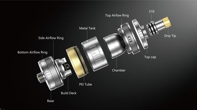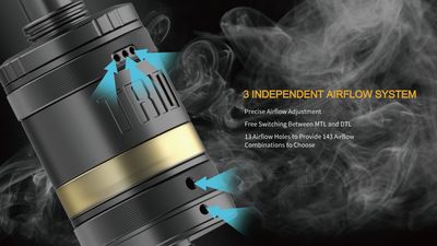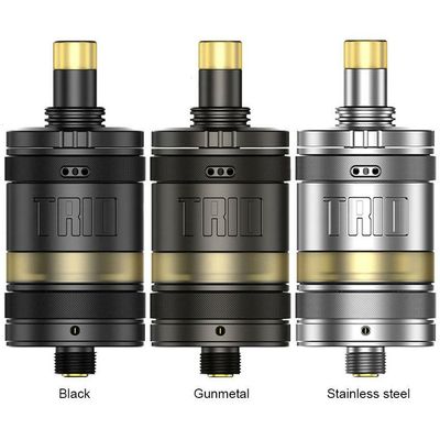ZQ Trio MTL RTA, damak tadınızı olağanüstü tatlarla şımartabilen 3 hava akışı kontrol halkasına sahip dünyanın ilk RTA'sıdır. ZQ Trio RTA, 22 mm çapında yüksek kaliteli paslanmaz çelik ve PEI plastikten yapılmıştır, üst kapakta Trio logosu ve üstte 510 damla ucu vardır. İnce çapı ve kompakt yüksekliği ile çeşitli modern pil modları ile büyük ölçüde uyumludur. Trio MTL RTA, 2 ml'lik bir kapasiteye sahiptir, kolay bir üst doldurma sistemi kullanarak, daha büyük doldurma deliğine girmek için üst kapağı sökün. ZQ Trio MTL RTA, üç bağımsız AFC halkasına sahip olmasıyla benzersizdir. Hava akışı kaynağı, bireysel ihtiyaçları karşılamak için ayrı ayrı ve optimum şekilde ayarlanabilir. 13 hava deliğini doğru bir şekilde hizalamak için 140'tan fazla farklı seçenek vardır. Trio MTL RTA, esas olarak MTL elektronik sigara kullanımı için optimize edilmiş olsa da, MTL ve DL ayarları arasında esnek bir şekilde geçiş yapabilir ve her iki açıdan da mükemmel performans sağlar. Bobine aşağıdan, yandan ve yukarıdan hava gönderilebilir. Trio MTL RTA, tekli bobinler için tasarlanmış postless solid yapılı deck kullanır. Deneyimsiz kullanıcılar bile kolayca uygun bobinlerle donatabilir. Tüm paket halihazırda inşaat için iki adet 0.8ohm Clapton bobinin yanı sıra uygun tornavidalar ve yardımcı aletler içerir.